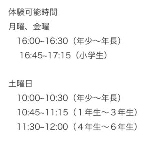 ※中学生以降の体験、入会は要相談となります。